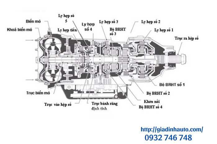 Hộp số at có cấu tạo gồm 3 phần: